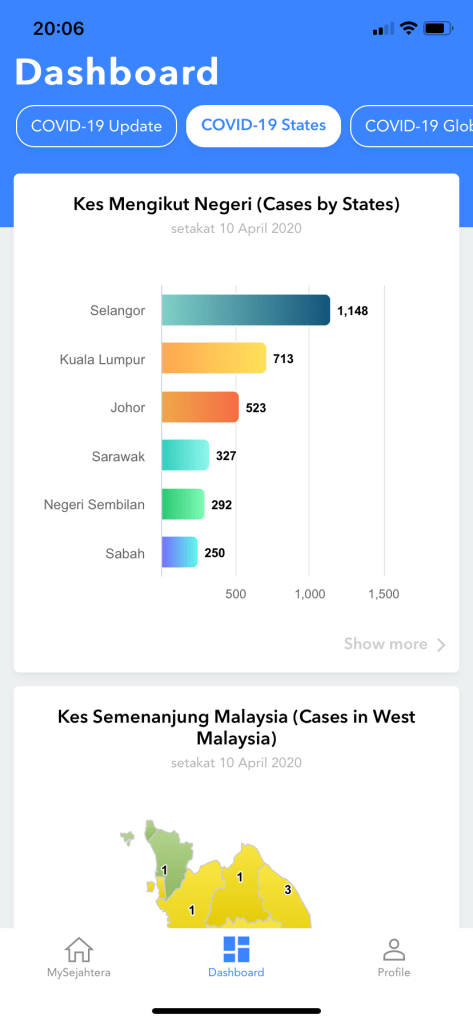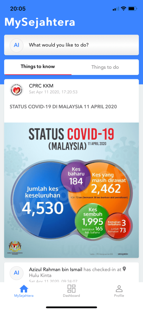 The app is called MySejahtera, and it is clearly made by nerds. It is just complicated enough that most people are going to give up setting it up, and it is full of nerdy statistics, charts and graphs.
