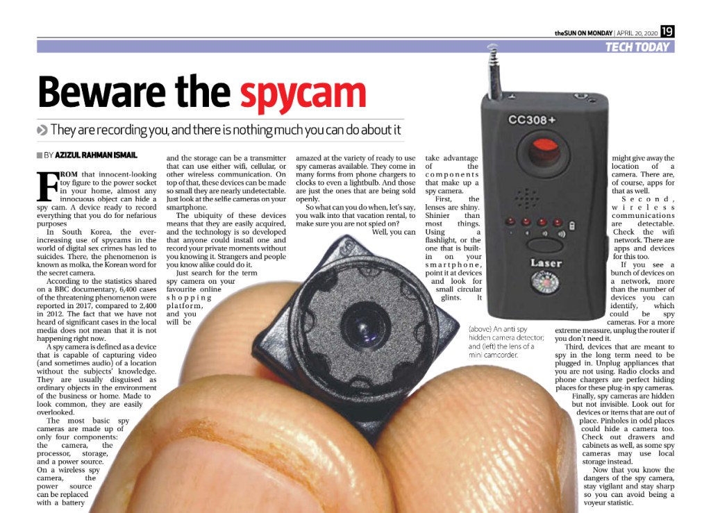 We were in the thick of a pandemic when the idea of this story popped-up in editorial. I didn’t think anyone was going to be worried about spycams at the time, and won’t be for the next year or so, until a cure or vaccine is found. But, it was still assigned. I saw only one way to make this piece worth the time and effort, make it entertaining for myself. Make it a hyperbole.