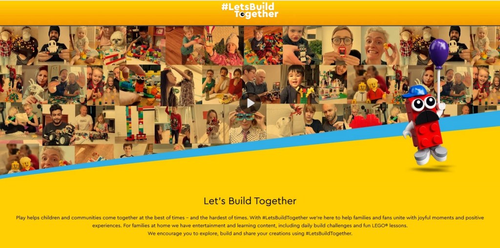 It starts with a web page (www.LEGO.com/letsbuildtogether) and the launch of the #letsbuildtogether across social media. Here LEGO mobilized their designers, STEM gurus, creatives and play experts to come up with new ways to provide a fun, play-based learning ideas to children and parents.