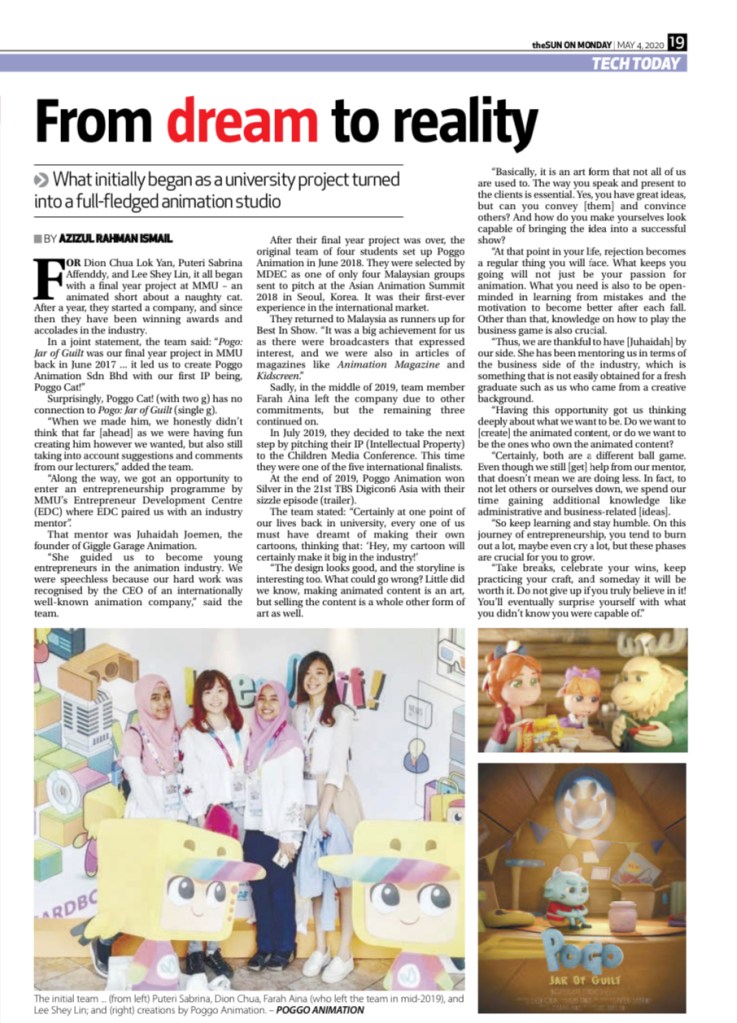 The thing about this story is that it is not about an all ladies animation studio. Instead, it is about a group of friends who took an idea, ran with it, and with encouragement, turned it into the internationally recognised Poggo Animation Sdn Bhd.