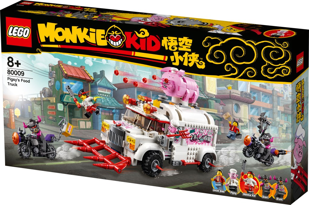 In its first wave, LEGO is releasing eight sets: White Dragon Horse Bike, Iron Bull Tank, Monkie Kid’s Cloud Jet, Pigsy’s Food Truck, Demon Bull King, Red Son’s Inferno Truck, Monkey King Warrior Mech, and Monkie Kid’s Team Secret HQ.