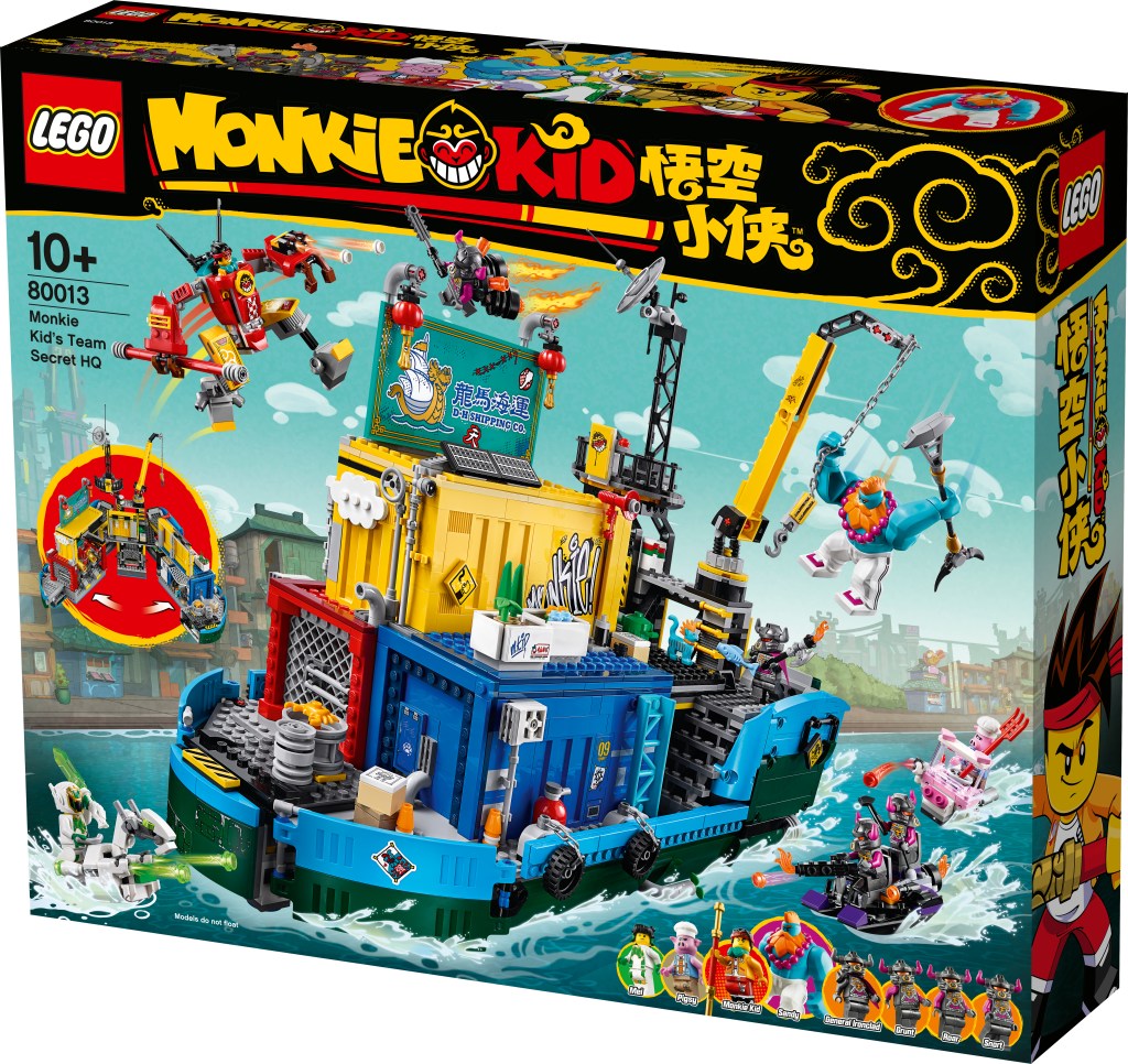 The other notable set in the first wave to me is the Monkie Kid’s Team Secret HQ. The largest of the eight. This set is a summary of almost everything the theme’s first wave has to offer. It comes with all the good guys, vehicles for almost every one of them, an equal number of goons, and a container barge that opens up to become a base.