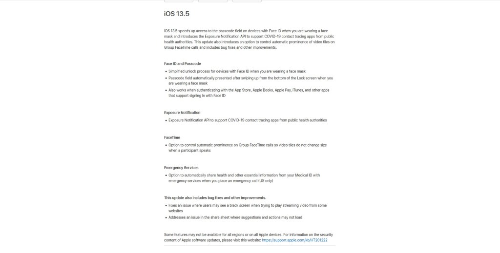 But that’s not all, iOS 13.5 “introduces the Exposure Notification API to support COVID-19 contact tracing apps from public health authorities.”