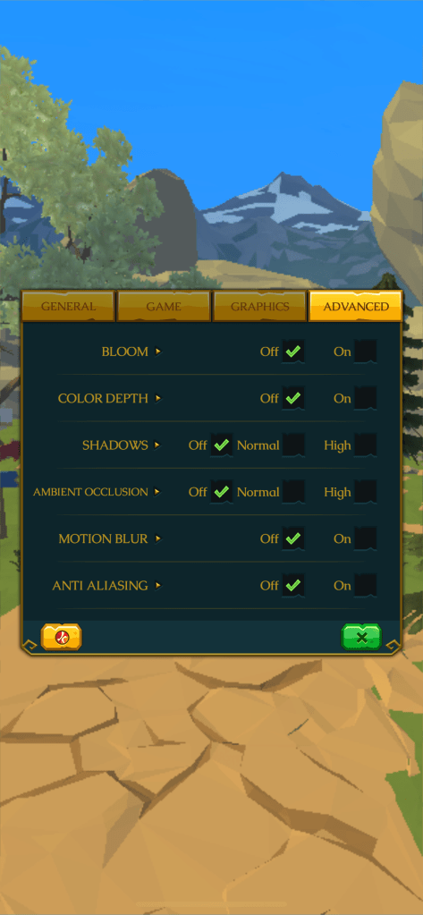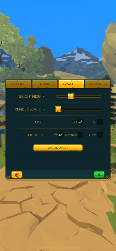 I wanted to write about the game sooner, but in the beginning, my phone ran so warm I didn’t want to risk damaging it in the long term. That is when I realised there are graphics options in the settings menu and I began to see how flexible the game is.