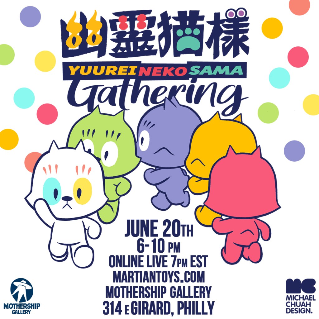 Heck, right now, on 20 June 2020, Michael Chuah is having his first “Yuurei Neko Sama Gathering” show in Mothership Toy Gallery, Philadelphia, USA. The organiser Martian Toys invited artists from all over the world to customise the Yuurei Neko Sama figure.