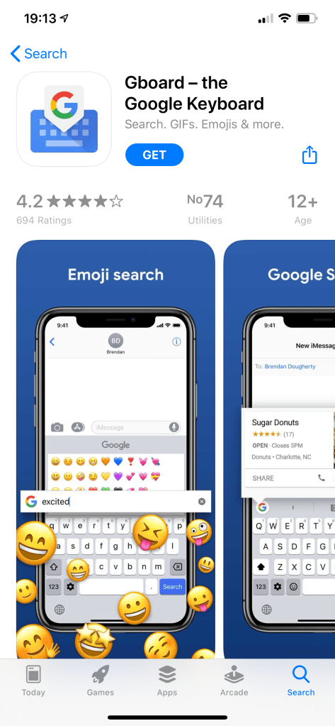 Anyway, I installed GBoard and made it the default keyboard on my mom’ iPhone SE. I am surprised that the app is available on the App Store at all. Knowing Google, this would not have been the best solution if my mom was concerned about privacy.