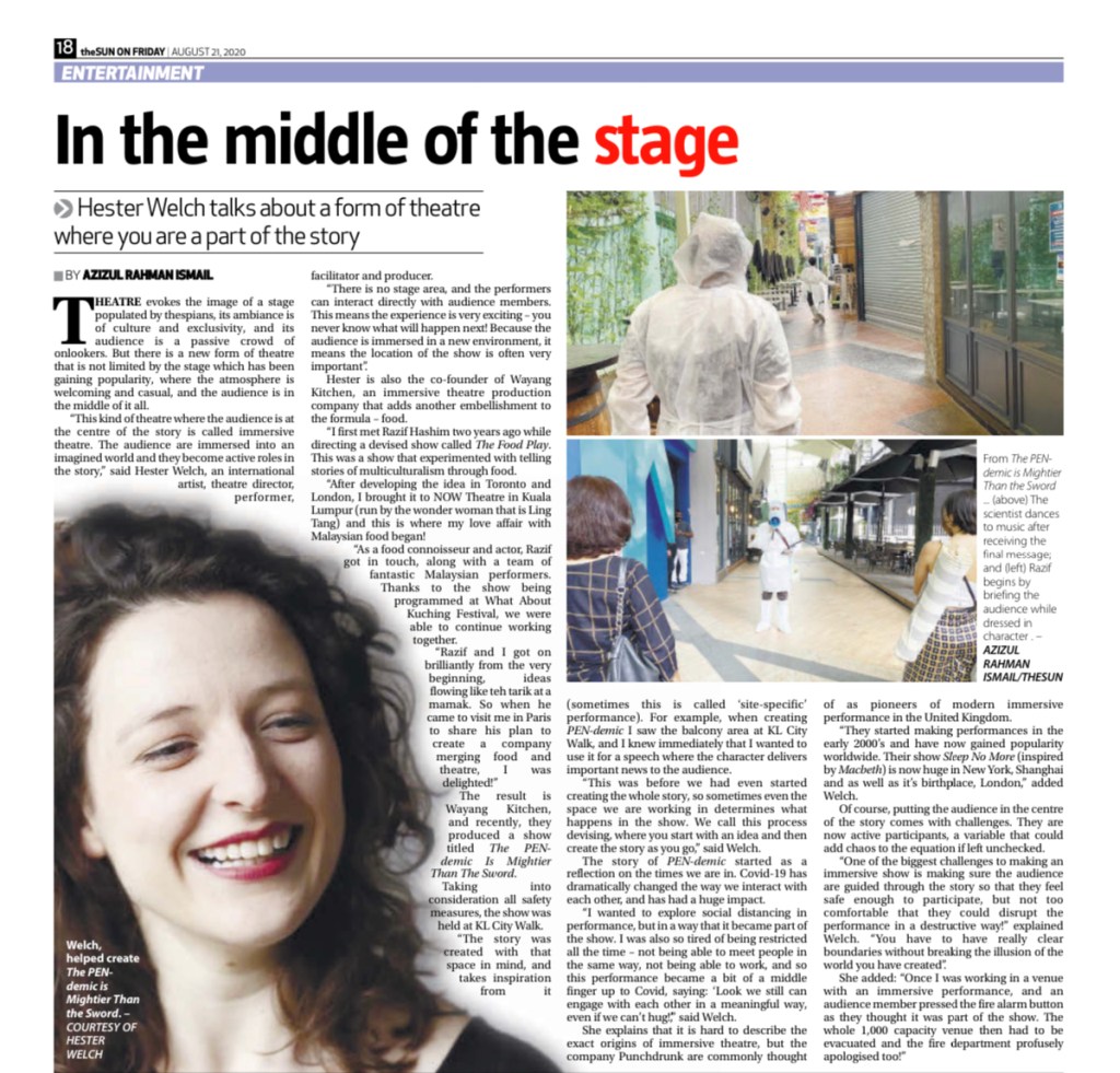 Immersive theatre is the next big thing, despite the pandemic. So, I felt I had to do this story. But despite my best efforts, by the time I get to interview Hester she is already flown to London, so the whole story had to be done remotely.