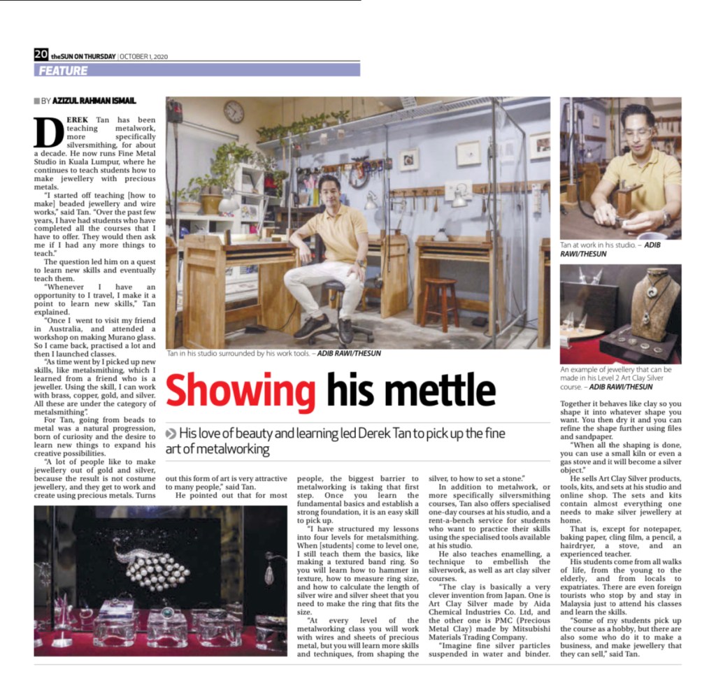 His studio, Fine Metal Studio is located in an unlikely place, Hartamas. Here he teaches all he knows about metalsmithing to his clients, which consists of mostly ex-pats and housewives.