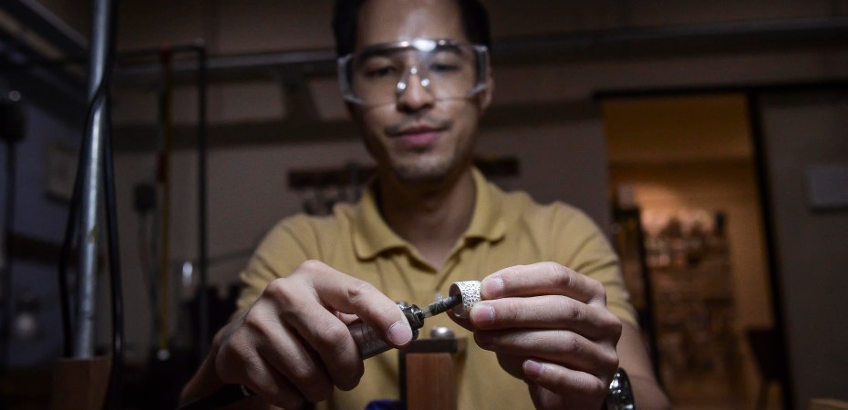 His studio, Fine Metal Studio is located in an unlikely place, Hartamas. Here he teaches all he knows about metalsmithing to his clients, which consists of mostly ex-pats and housewives.