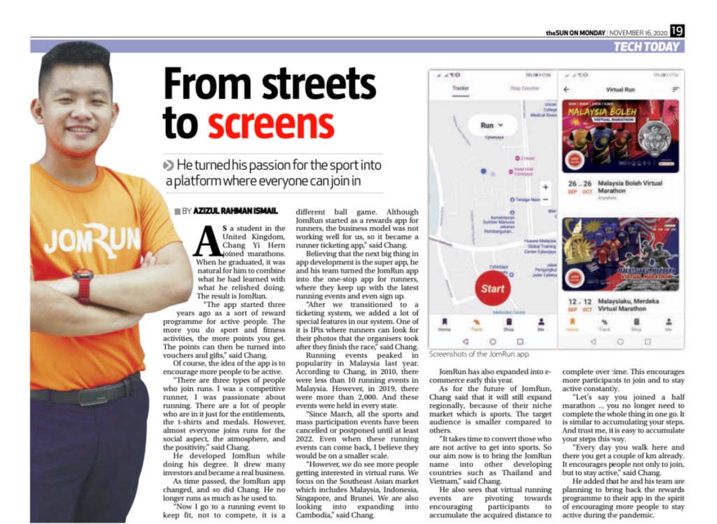 Chang Yi Hern loves to run and he was competitive. It was only natural that he developed an app that rewards its user for adopting and maintaining a healthy lifestyle. He called it JomRun and it garnered a lot of supporters, endorsements, and sponsorships.