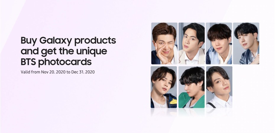 Eligible products include smartphones from the Galaxy Note20 series (start at RM3,899), Galaxy S20FE (RM3,399), and Galaxy S20 series (starts at RM3,599). You could also get photo cards of Jin, Jimin, RM, J-Hope, Suga, V, or Jungkook (which are the names of the members of BTS and not new characters from The Mandalorian… as far as I know) if you purchase a Galaxy Watch3 (stars at RM1,699) or the Galaxy Buds Live (RM699).