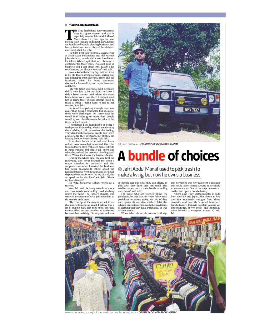 There is nothing ordinary about how Jafri Abdul Manaf got to where he is today. From a dropout to a failed contractor, to a trash picker, and now a successful businessman of over 11 years. Still, he never forgets his humble beginnings and the lessons that he learned all those years ago.