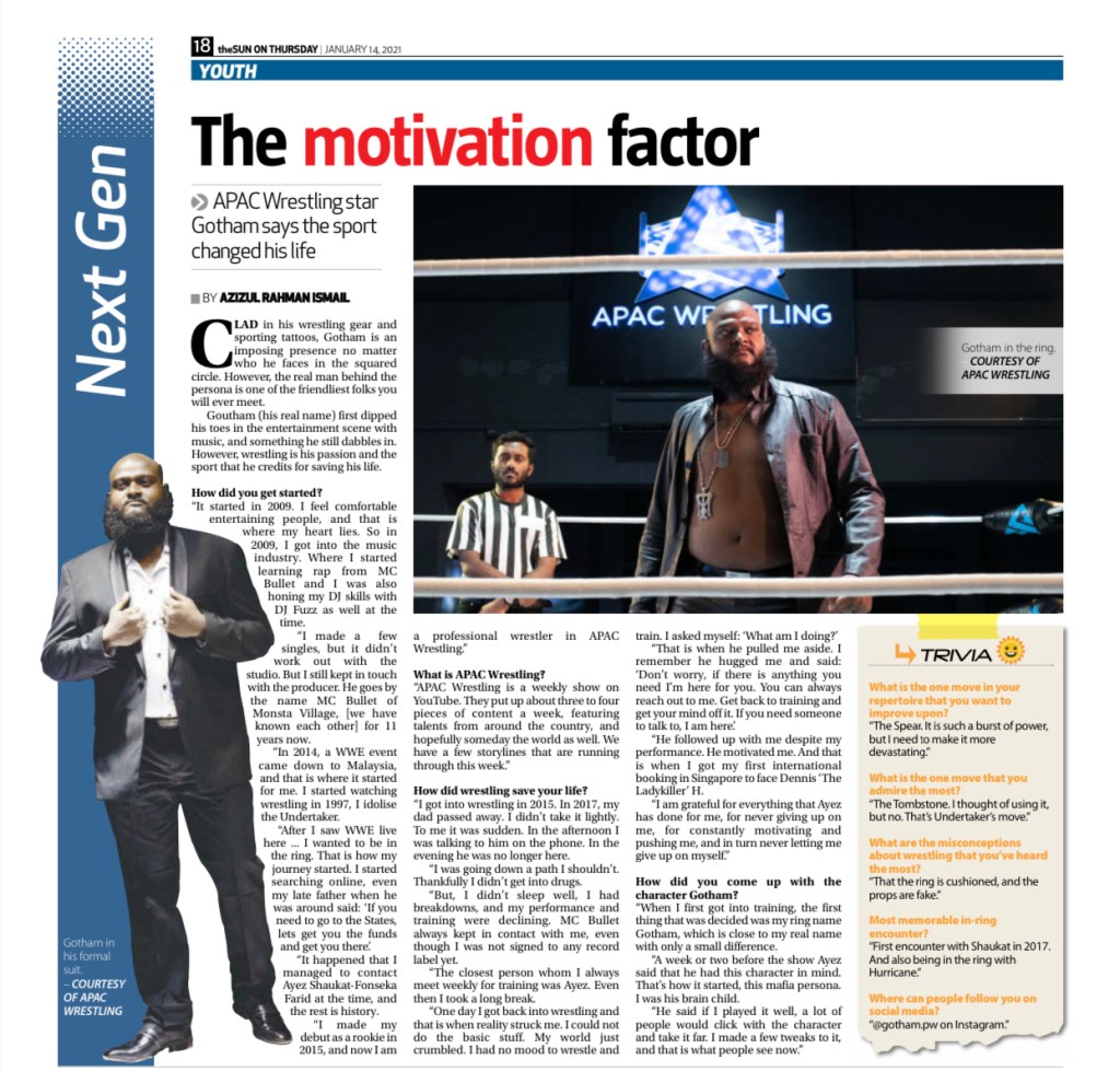 I wanted to do this story ever since I met the talents that made up the Malaysian pro wrestling industry. The problem was how. In the ring, Gotham is a street smart gangster, a stark contrast to the hardworking and friendly man he is outside the squared circle. I did not want to break that illusion for the fans.