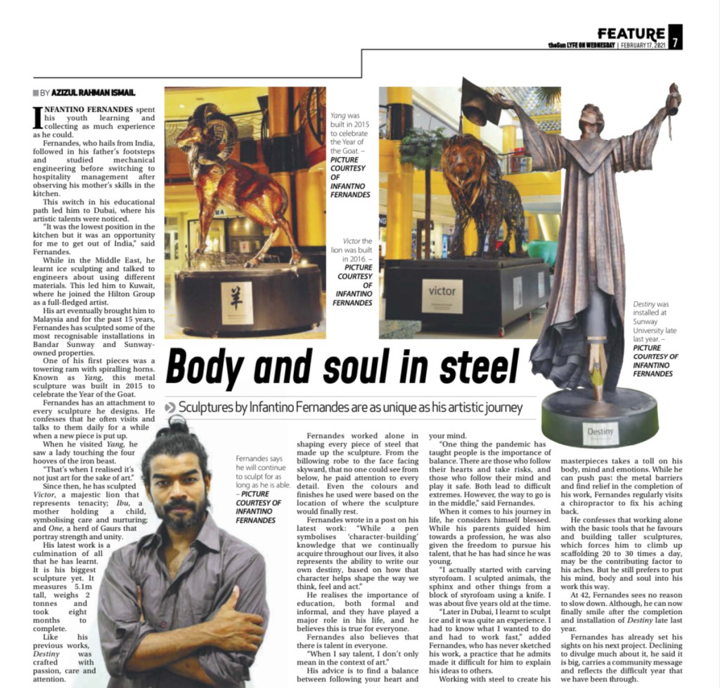Every steel titan stands guard to inspire those who gaze upon it at key properties owned by Sunway. Infantino credited and profusely thanked the patronage of Sunway Group founder and chairman Tan Sri Dr Jeffrey Cheah for enabling him.
