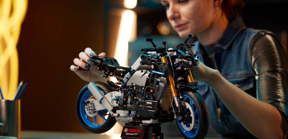 The 42159 LEGO Technic Yamaha MT-10 SP interprets the flagship Hyper Naked range motorcycle in axels, beams, pins, and gears. It features LEGO Technic renditions of the 4-cylinder engine and the multi-speed transmission.