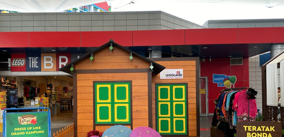 This season, the entrance has been transformed into a Kampung (Malay village) scene for the Nostalgia Raya event. The Malaysian-themed celebration featured traditional games, crafts, and LEGO builds that guests can try.