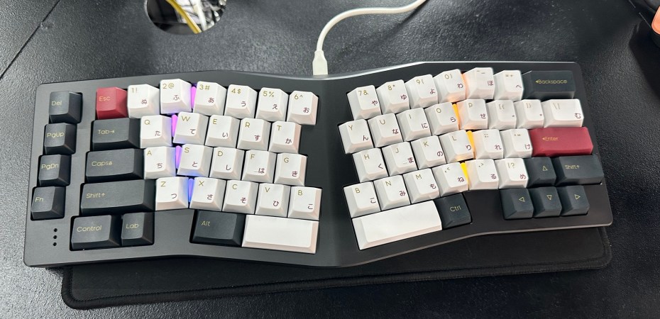 This keyboard would have been at the top of my list. Everything about it says it is a writer’s enthusiast keyboard. The Tented Alice layout is designed for typing comfort. It lacks per-key lighting that is predominantly for gaming, and it has just enough keys for typing. It has four special navigation keys that can be reassigned to macro keys.