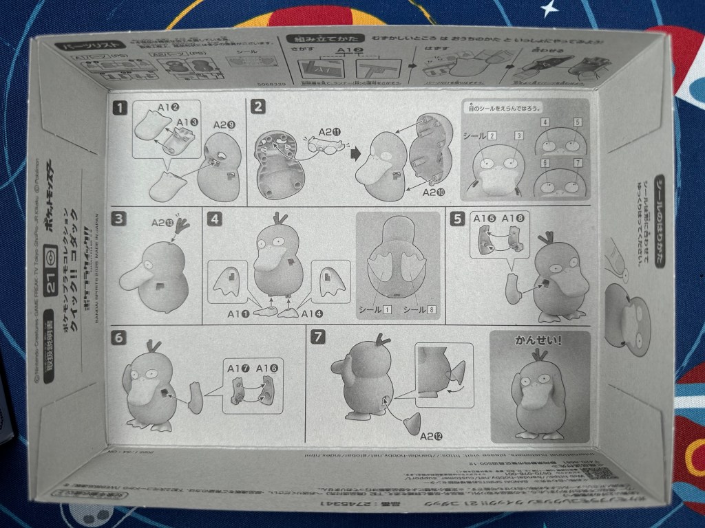 The assembly took no time at all. Dotting Psyduck’s eyes was easy because its iris is moulded into the plastic.
