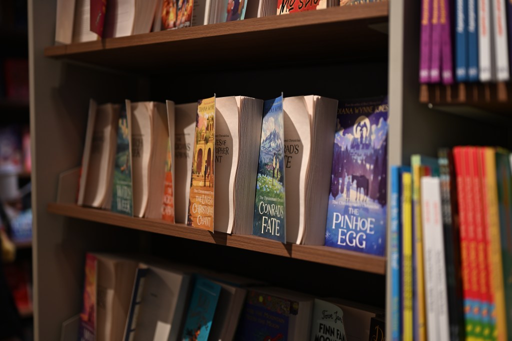 Because the shop was new, most of the books were not wrapped. This causes the shop to be used irresponsibly as a library. Within a couple of weeks of the shop opening, most of the out-facing books display curled covers and wavy pages, likely due to mishandling.