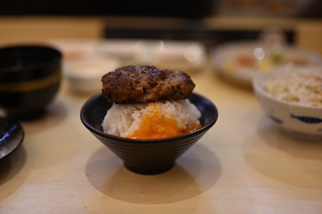 For first-time visitors, I recommend their A5 Shimomuragyu Wagyu Hamburg, which came with a Rice set. It looked small, but it was very satisfying. The full meal came with a beef patty, rice, egg yolk, cabbage salad, miso soup and a selection of condiments. All for less than RM40.