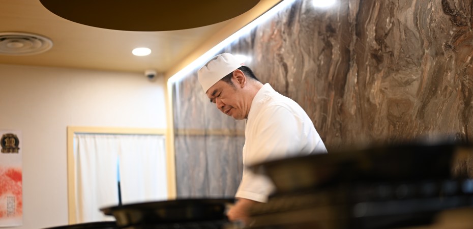 Inside, the restaurant features a long bar. Everyone sits facing where the chefs prepare the beef. As the name implies, the menu featured (halal) wagyu beef and rice. It also served unagi (eel) and udon.