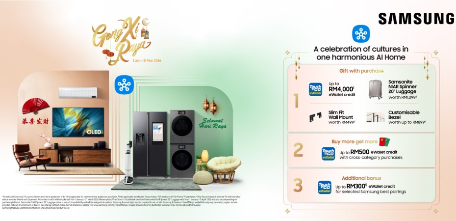 Samsung Malaysia’s Gong Xi Raya promotion for consumer electronics runs until 31 March.