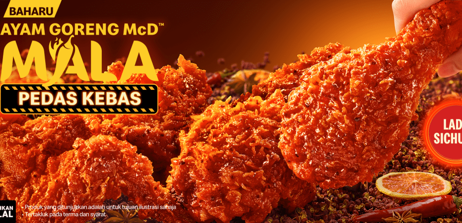 McDonald’s Malaysia introduced a new Mala-flavoured fried chicken and sundae on April 8. These seasonal items are available for a limited time at physical restaurants, drive-thrus, and through delivery services.